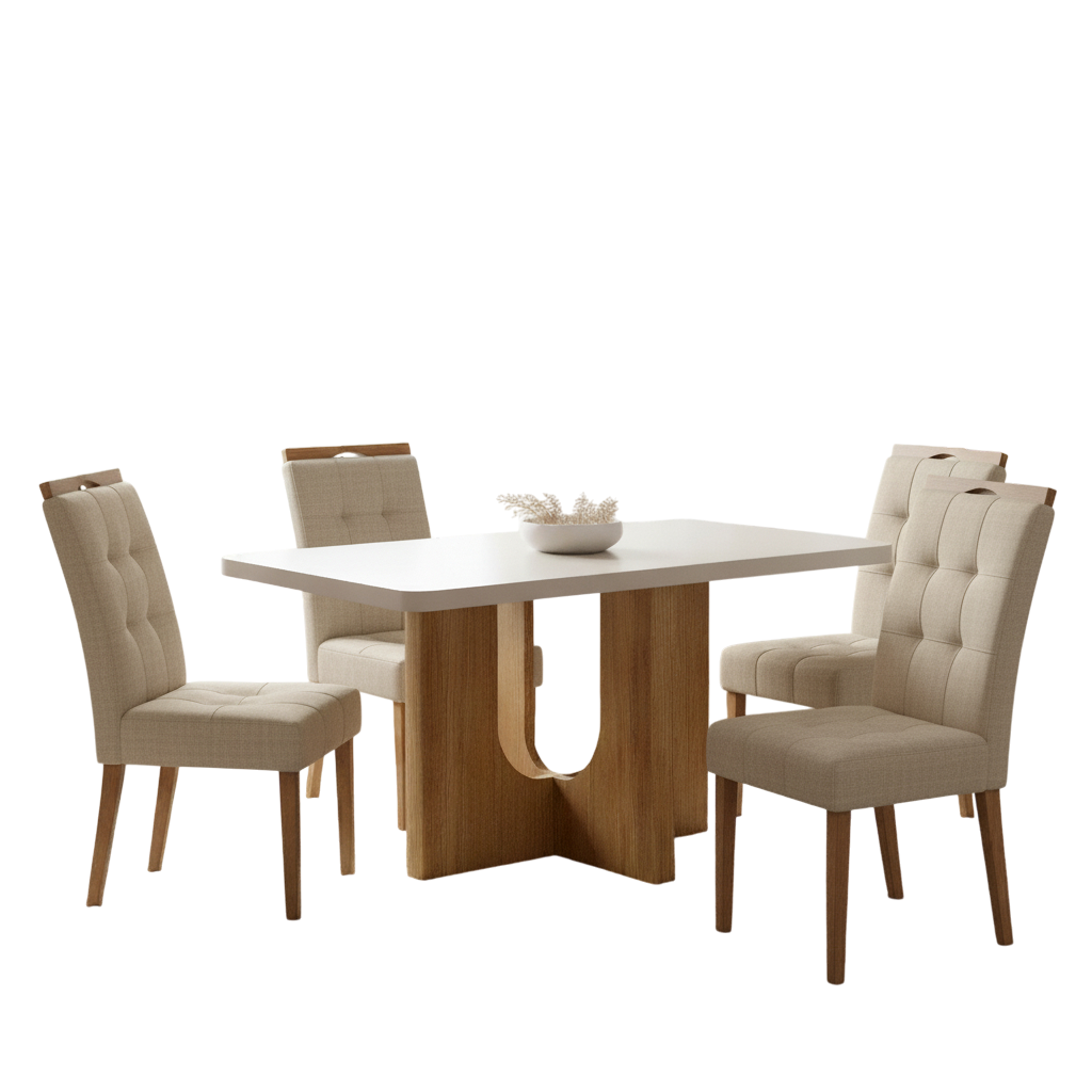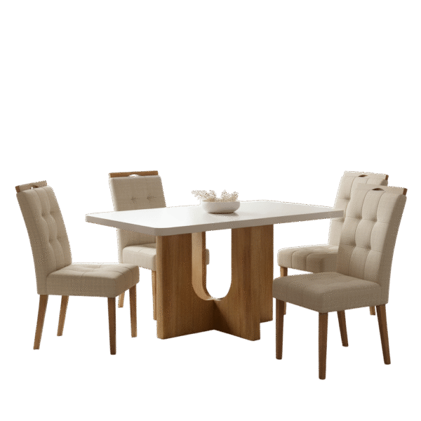 Mesa Dora 120 Cinamono/Off White com 4 Cadeiras Sophia Linho Bege 200 – VALDEMÓVEIS + WM DECOR
