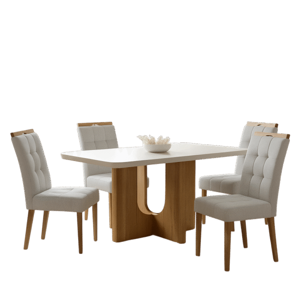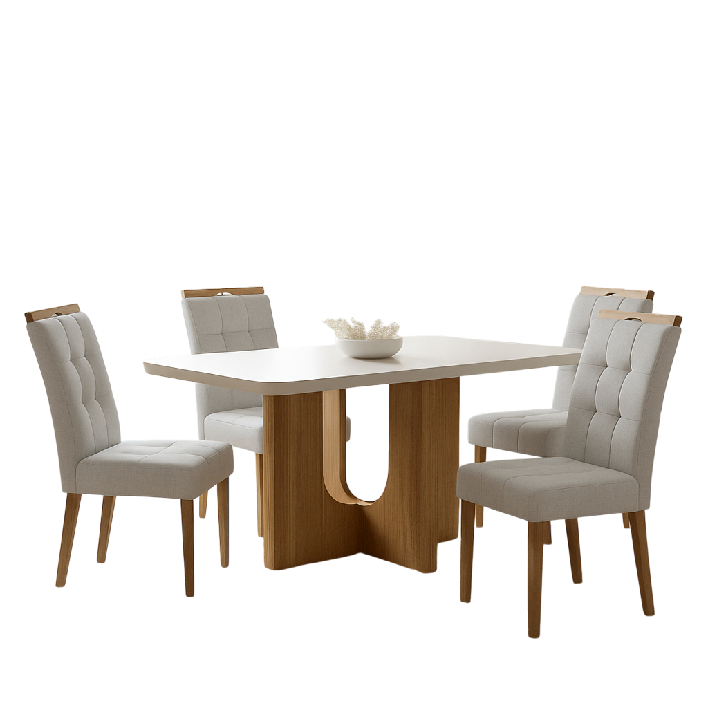 Mesa Dora 120 Cinamono/Off White com 4 Cadeiras Sophia Linho Cinza Prata 206 – VALDEMÓVEIS + WM DECOR