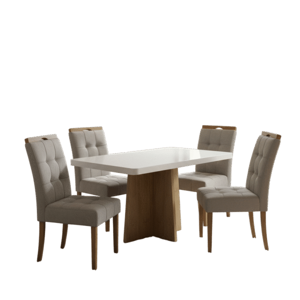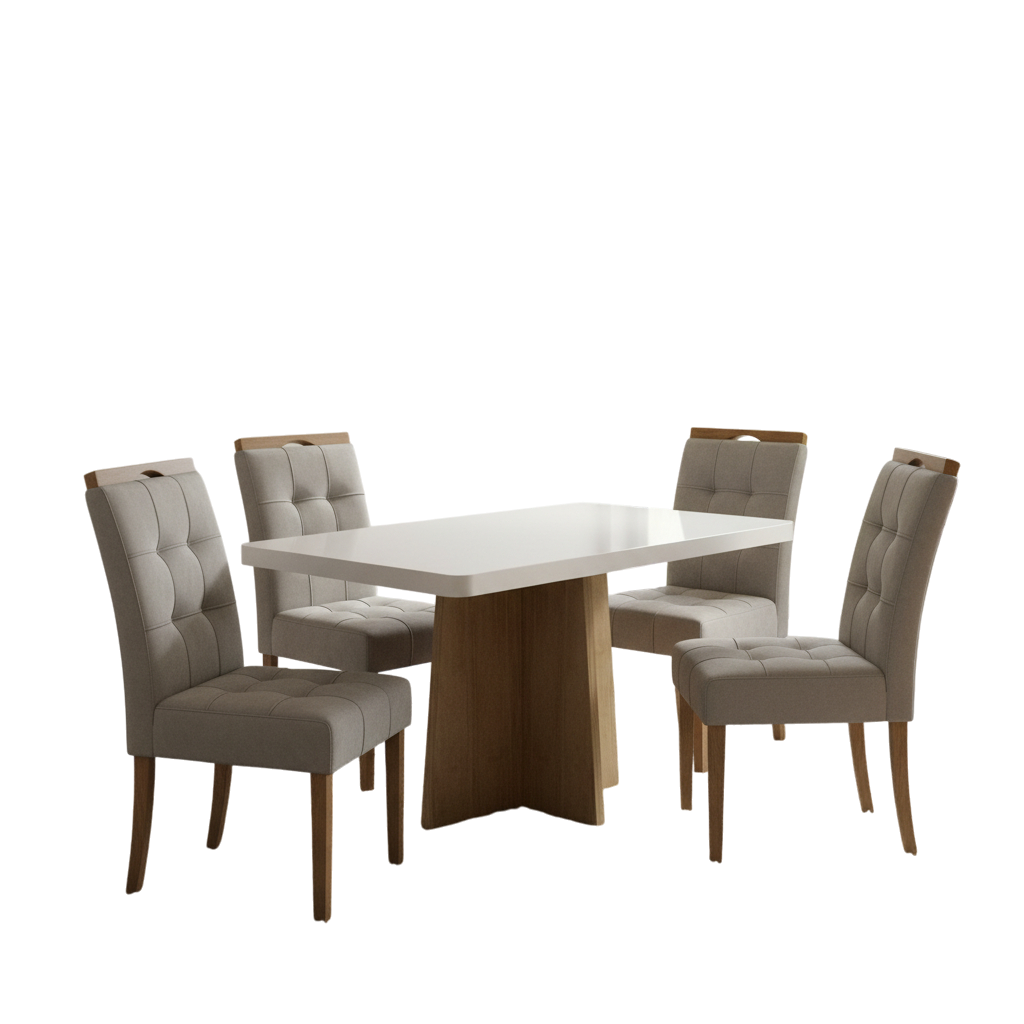 Mesa Jade 120 (Tampo 40 mm) Cinamomo/Off White com 4 Cadeiras Sophia Veludo Bege – VALDEMÓVEIS + WM DECOR