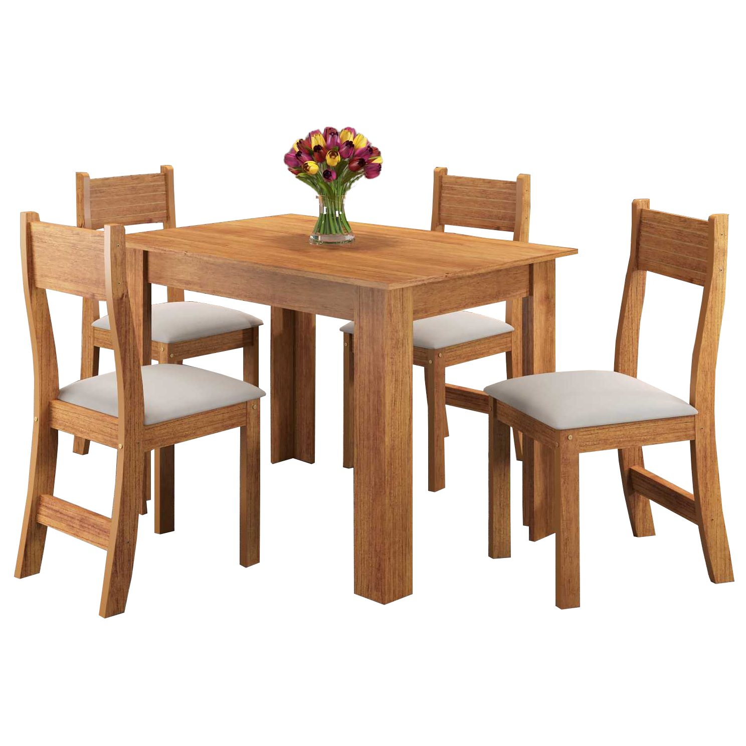 Mesa Palace/Perla Mel com 4 Cadeiras Brisa Veludo Marfim – VIERO MÓVEIS
