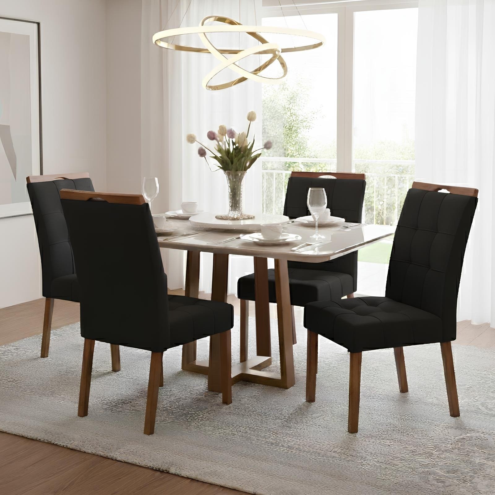 Mesa Pedro 120 Mel/Off White com 4 Cadeiras Sophia Veludo Preto – ART ASSENTOS + WM DECOR