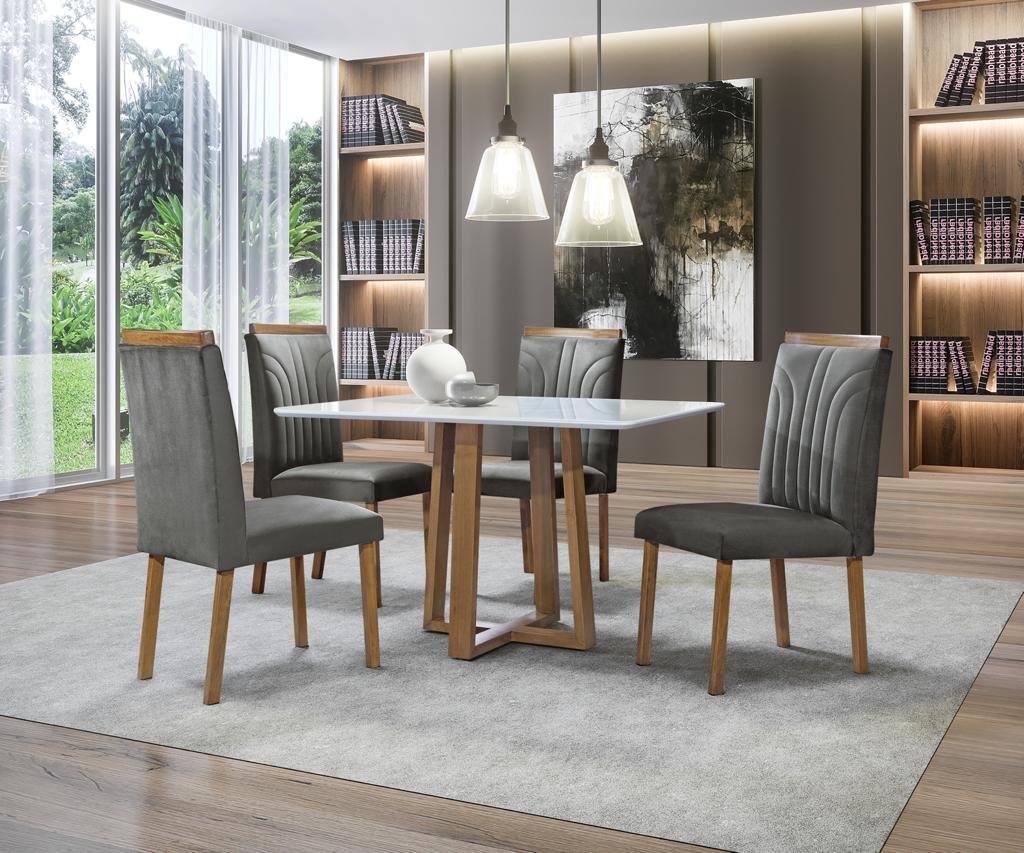 Mesa Pedro 120 Mel/Off White com 4 Cadeiras Veneza Grafite – ART ASSENTOS