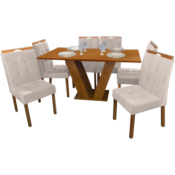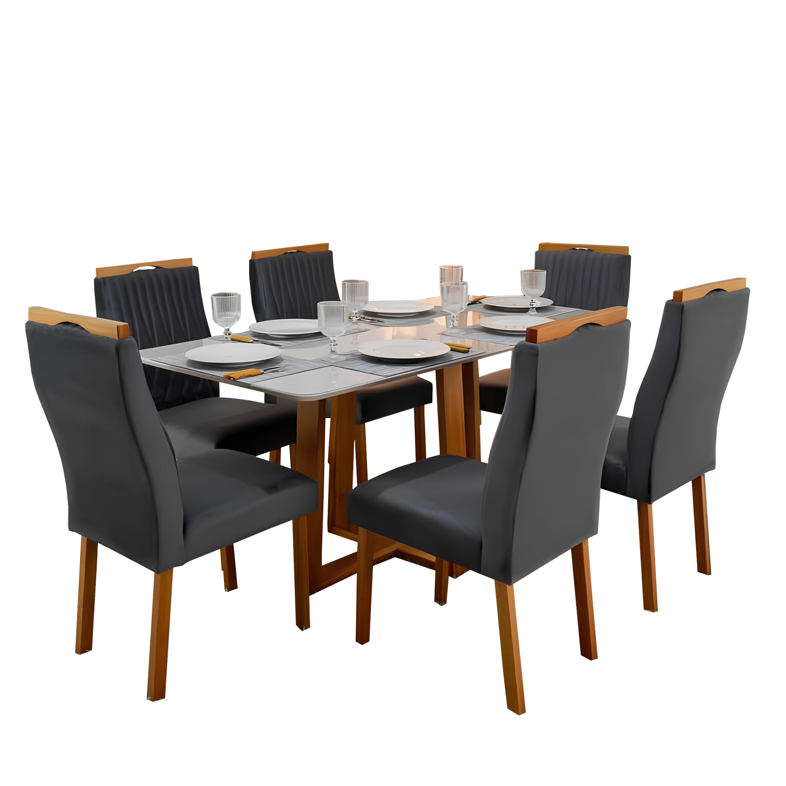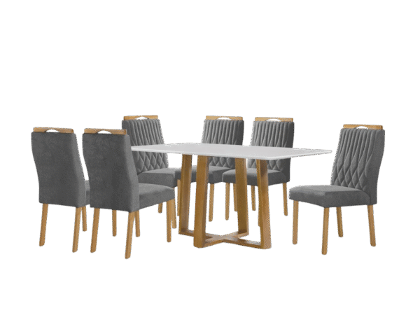 Mesa Pedro 160 Mel/Off White com 6 Cadeiras Gênova Veludo Grafite – ART ASSENTOS