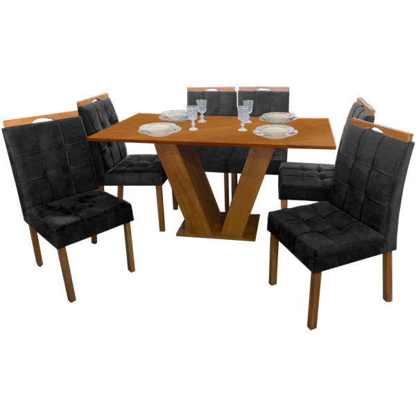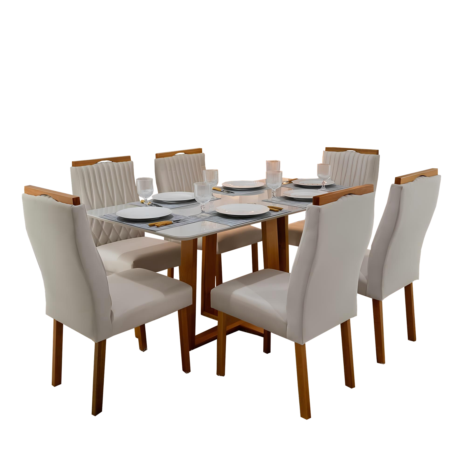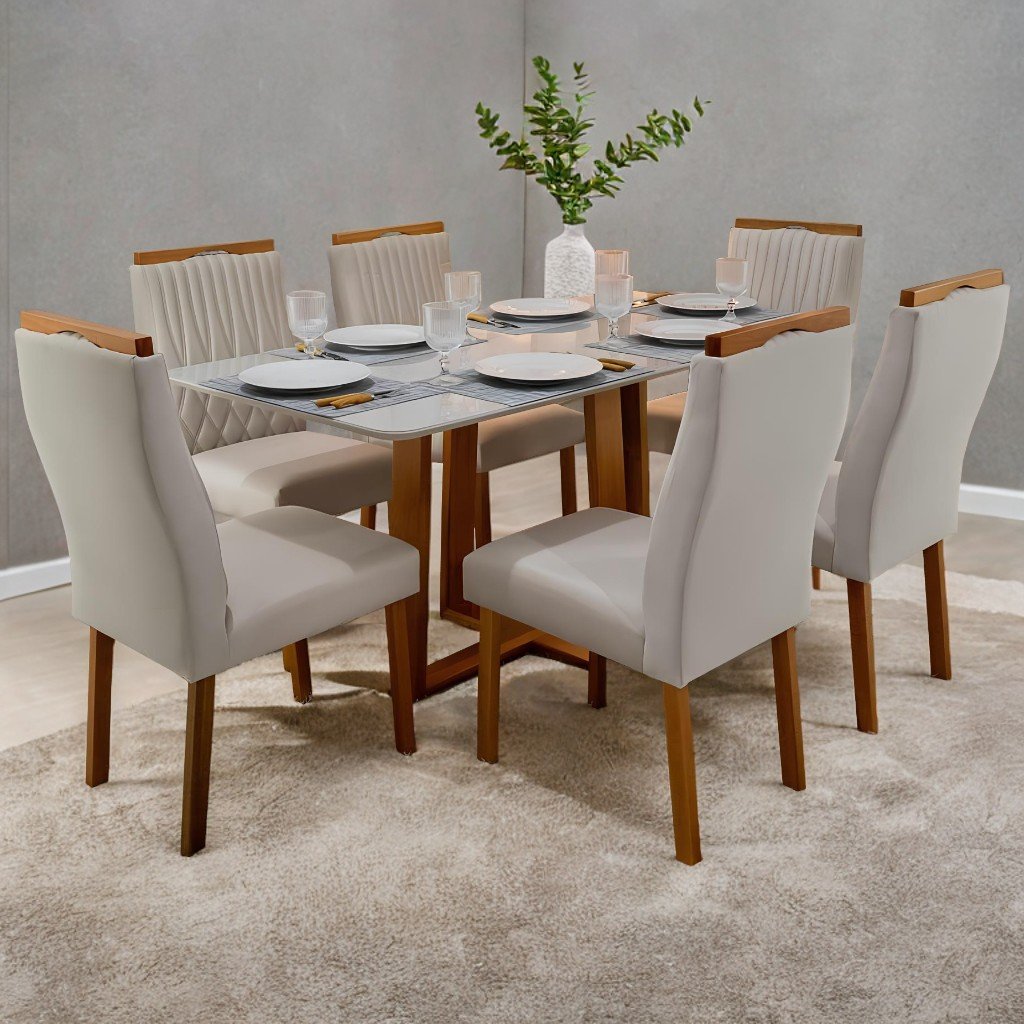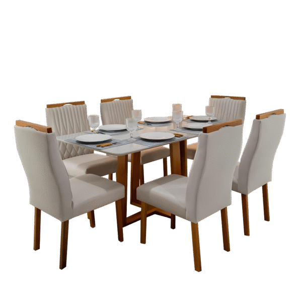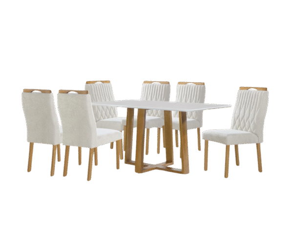 Mesa Pedro 160 Mel/Off White com 6 Cadeiras Gênova Veludo Marfim – ART ASSENTOS