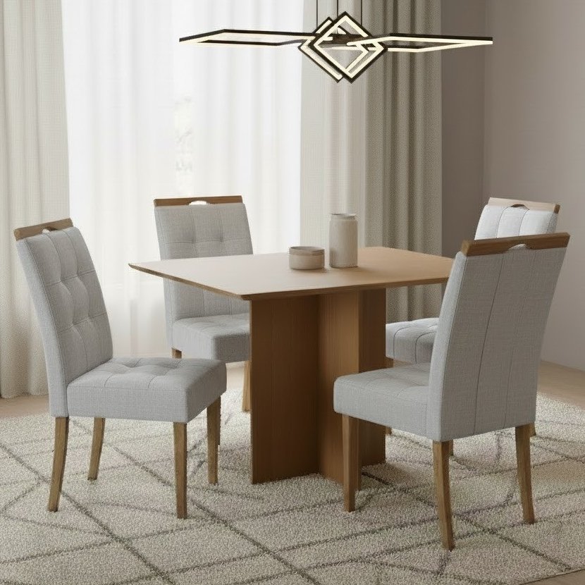 Mesa Pérola 120 Imbuia Mel (Tampo Viena s/vidro) com 4 Cadeiras Sophia Linho Cinza Prata 206 – CARVALHO DECOR + WM DECOR