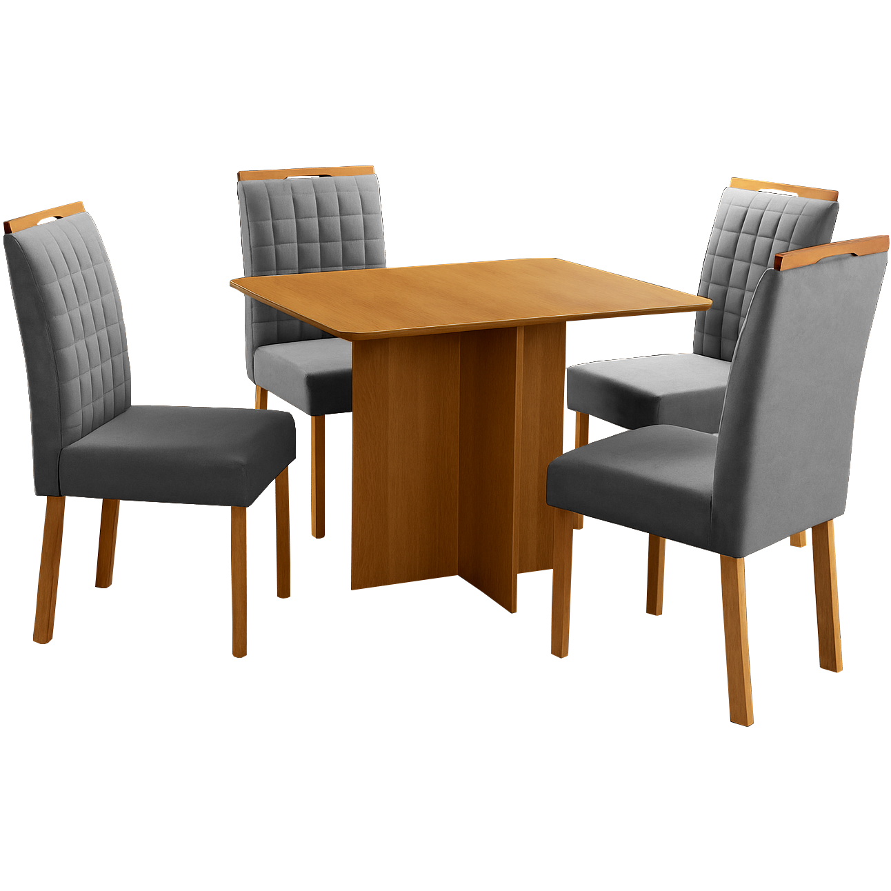 Mesa Pérola 90 Imbuia Mel (Tampo Viena s/vidro) + 4 Cadeiras Pandora 01 Veludo Cinza Grafite 414 – CARVALHO DECOR