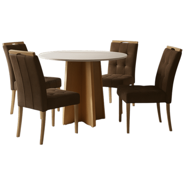 Mesa Redonda Celebrare 100 Amêndoa Clean/Off White com 4 Cadeiras Sophia Veludo Marrom – LOPAS + WM DECOR