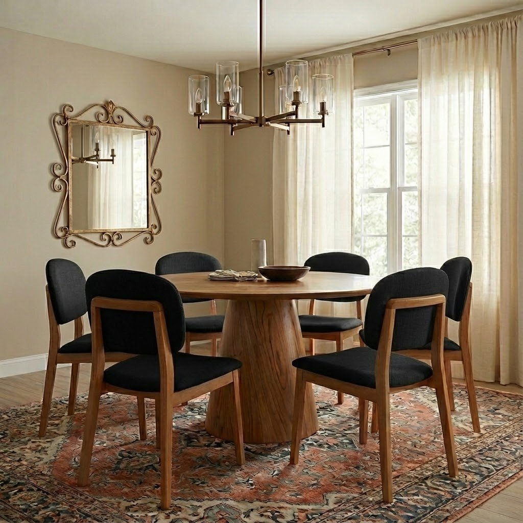 Mesa Redonda Malva 130 Mel com 6 Cadeiras Gaya Mel/Linho Preto 09 – J SILVA MÓVEIS