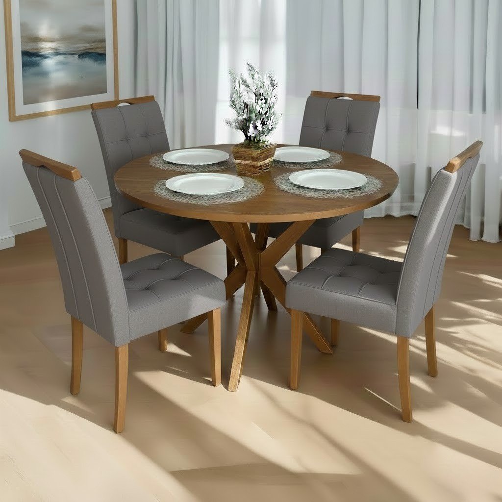 Mesa Redonda Simpatia 108 Cinamomo com 4 Cadeiras Sophia Veludo Cinza Grafite – JCM MOVELARIA + WM DECOR