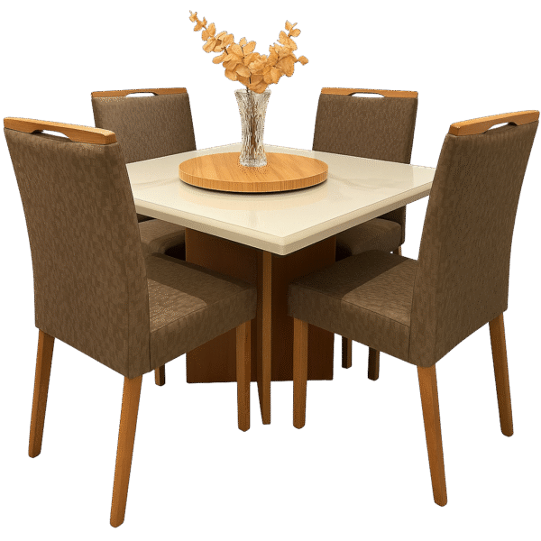 Mesa Salinas 120 Cinamomo/Off White com 4 Cadeiras Priscila Veludo Marrom 1015 – AVALON DECOR + CARVALHO DECOR