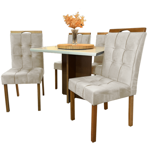 Mesa Salinas 120 Cinamomo/Off White com 4 Cadeiras Sophia Veludo Bege – AVALON DECOR + WM DECOR