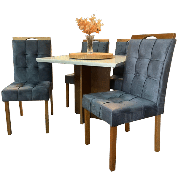 Mesa Salinas 120 Cinamomo/Off White com 4 Cadeiras Sophia Veludo Cinza Grafite – AVALON DECOR + WM DECOR