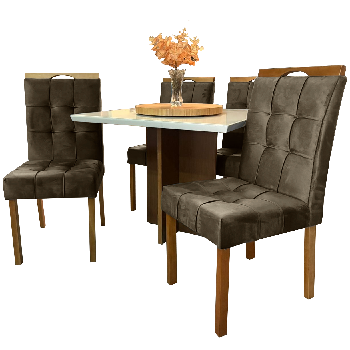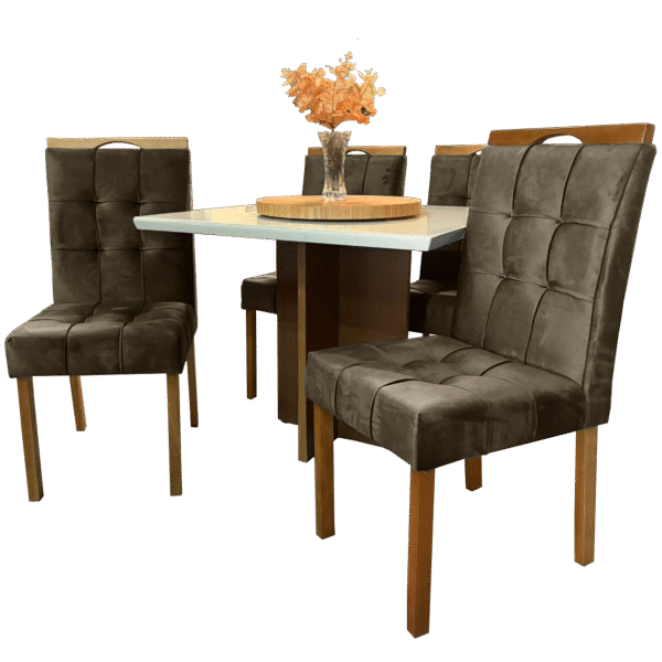 Mesa Salinas 120 Cinamomo/Off White com 4 Cadeiras Sophia Veludo Marrom – AVALON DECOR + WM DECOR