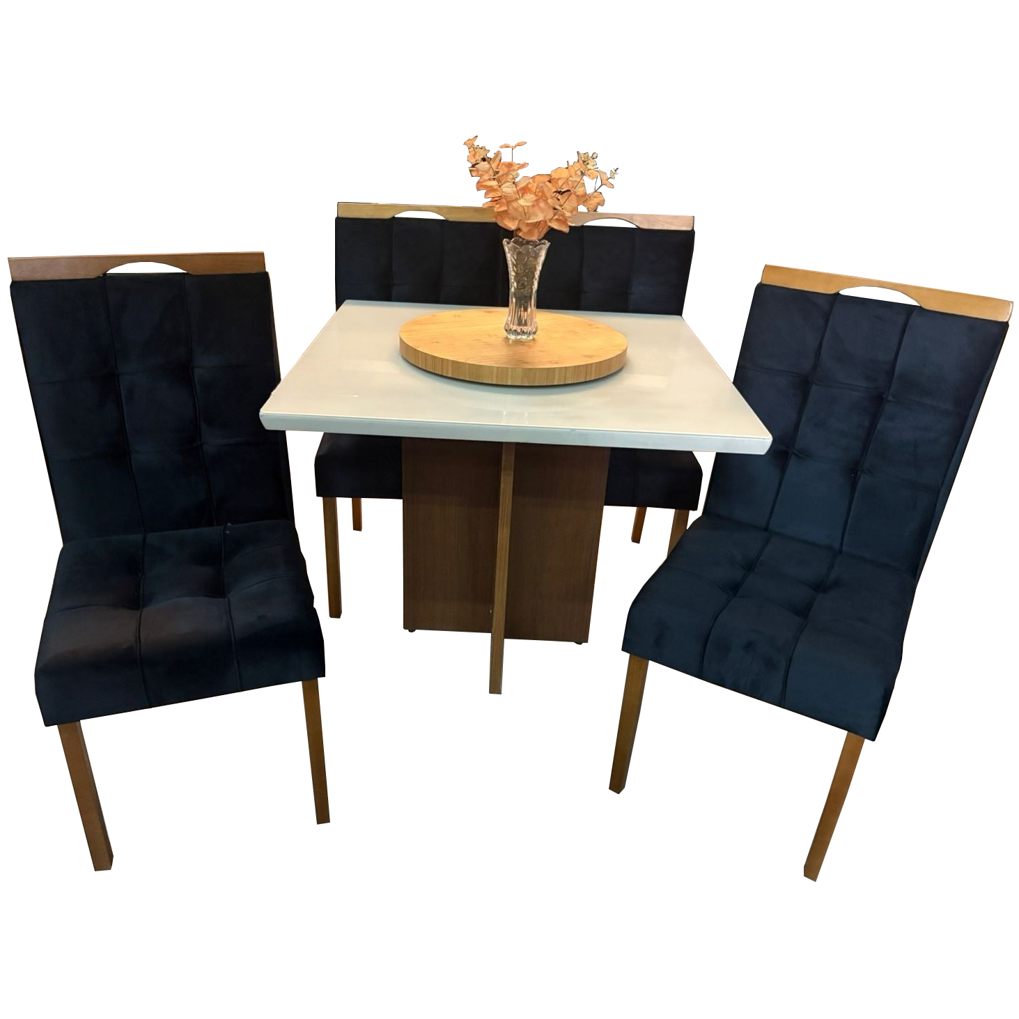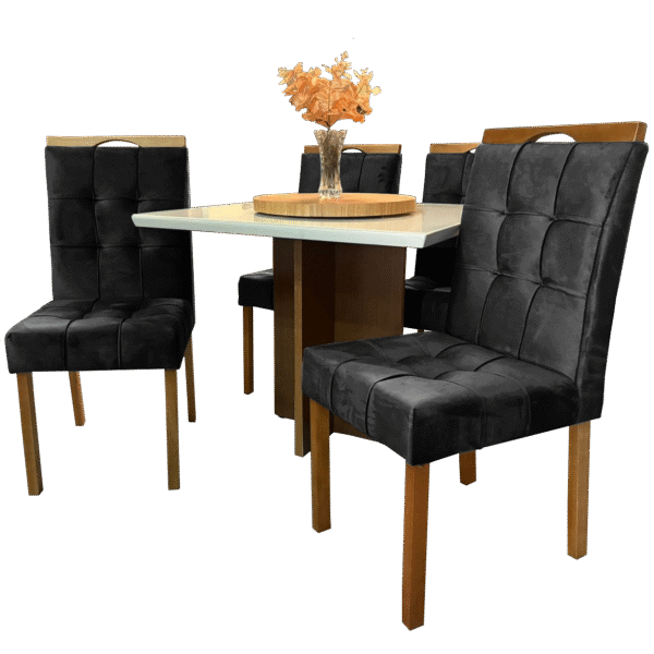 Mesa Salinas 120 Cinamomo/Off White com 4 Cadeiras Sophia Veludo Preto – AVALON DECOR + WM DECOR