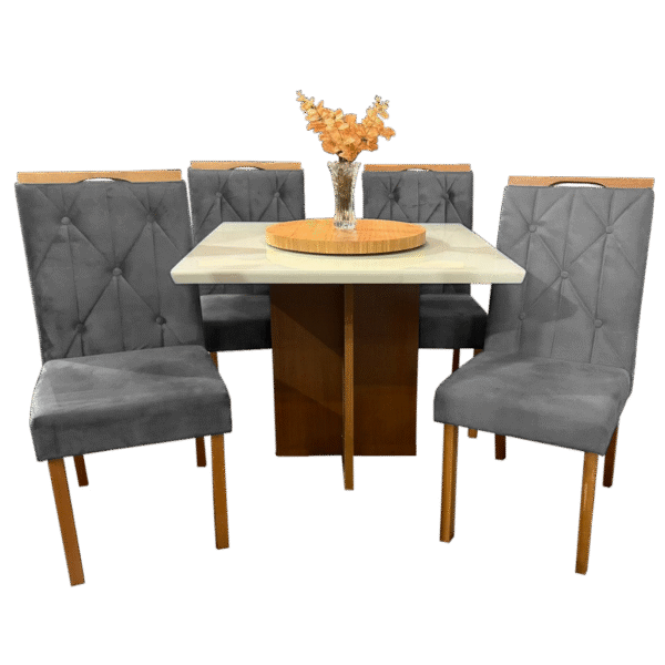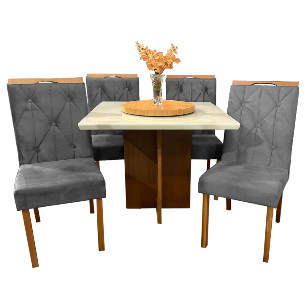 Mesa Salinas 120 Cinamomo/Off White com 4 Cadeiras Yasmim Veludo Cinza Grafite – AVALON DECOR + KM DECOR