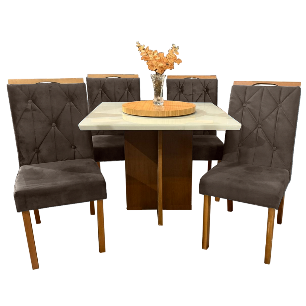 Mesa Salinas 120 Cinamomo/Off White com 4 Cadeiras Yasmim Veludo Marrom – AVALON DECOR + KM DECOR