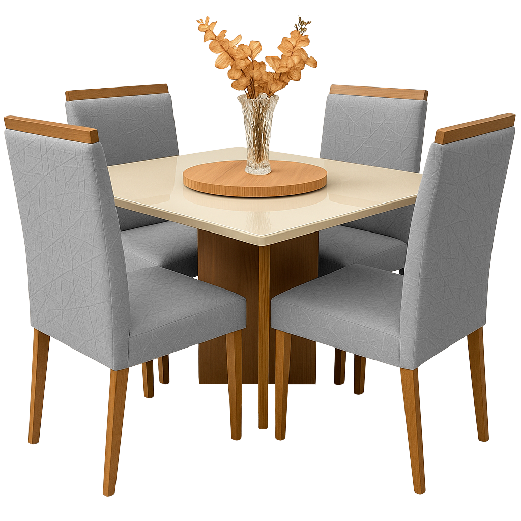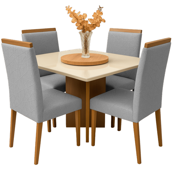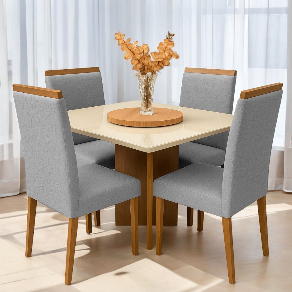 Mesa Salinas 90 Cinamomo/Off White com 4 Cadeiras Samantha 05 Veludo Cinza Prata 1013 – AVALON DECOR + CARVALHO DECOR