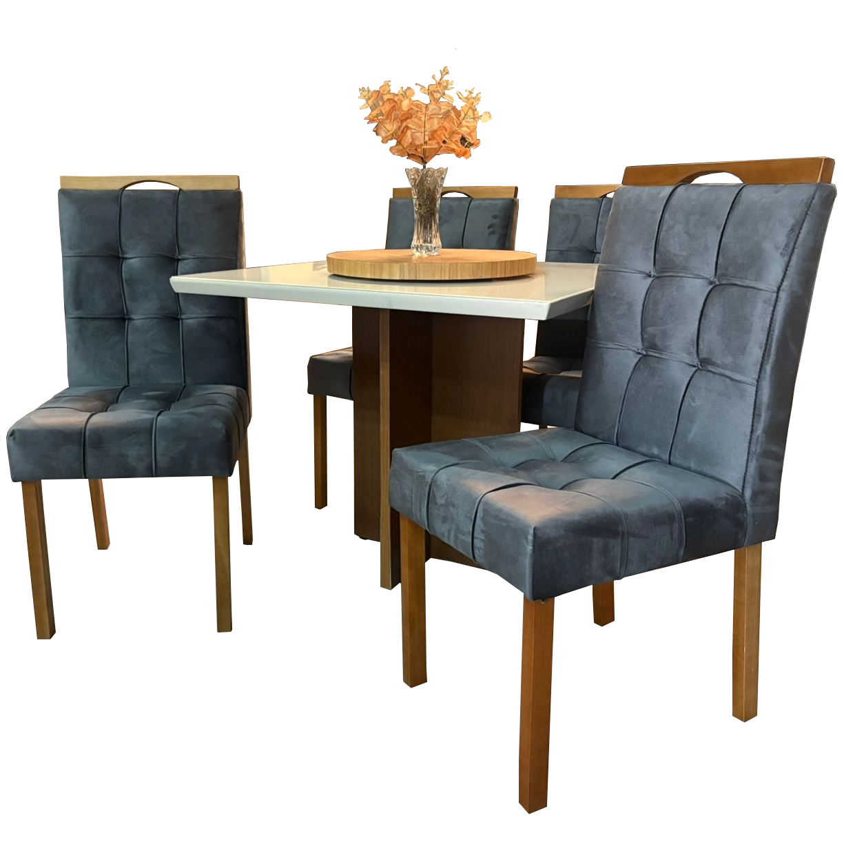 Mesa Salinas 90 Cinamomo/Off White com 4 Cadeiras Sophia Veludo Cinza Grafite – AVALON DECOR + WM DECOR