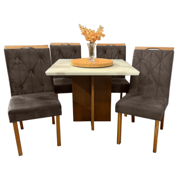 Mesa Salinas 90 Cinamomo/Off White com 4 Cadeiras Yasmim Veludo Marrom – AVALON DECOR + KM DECOR