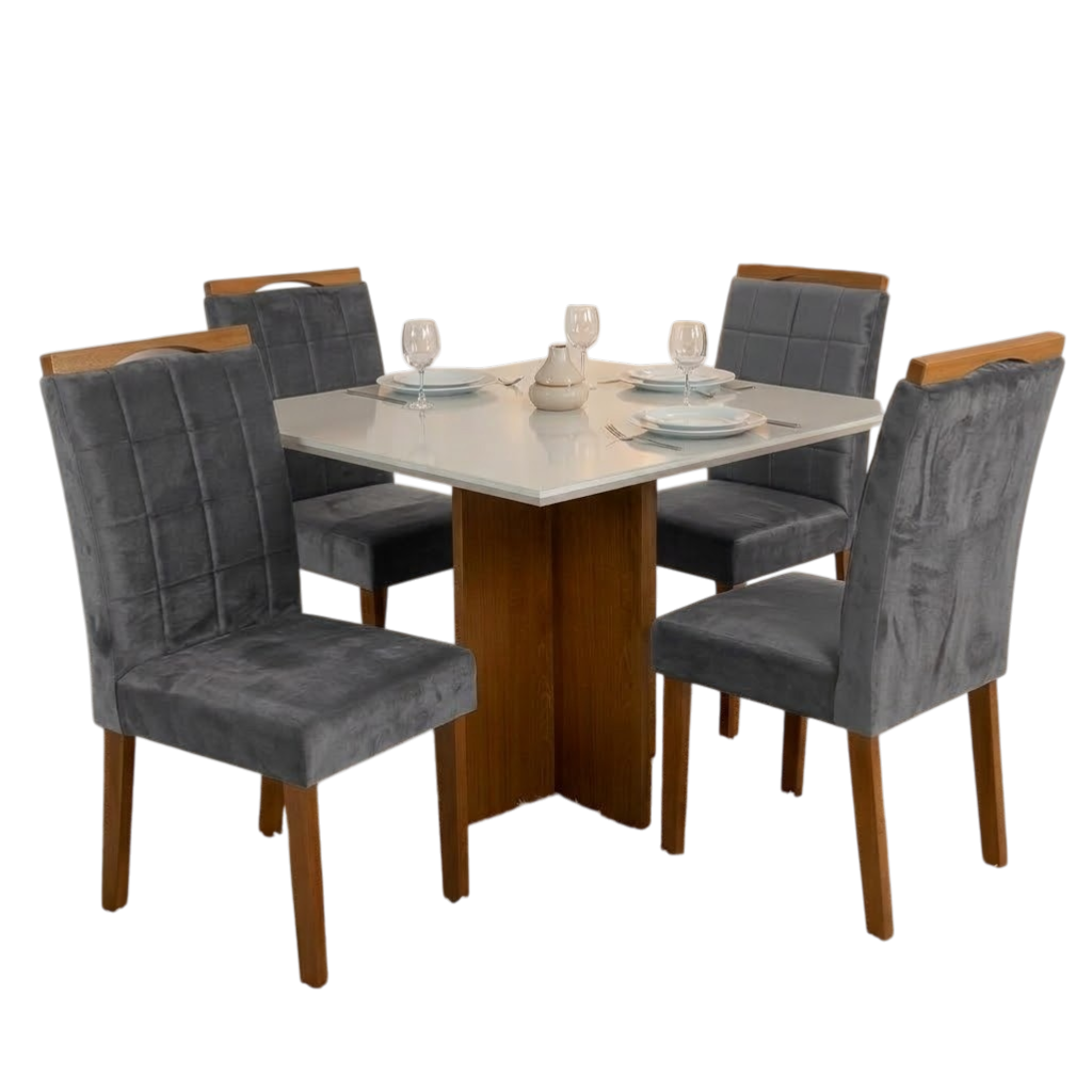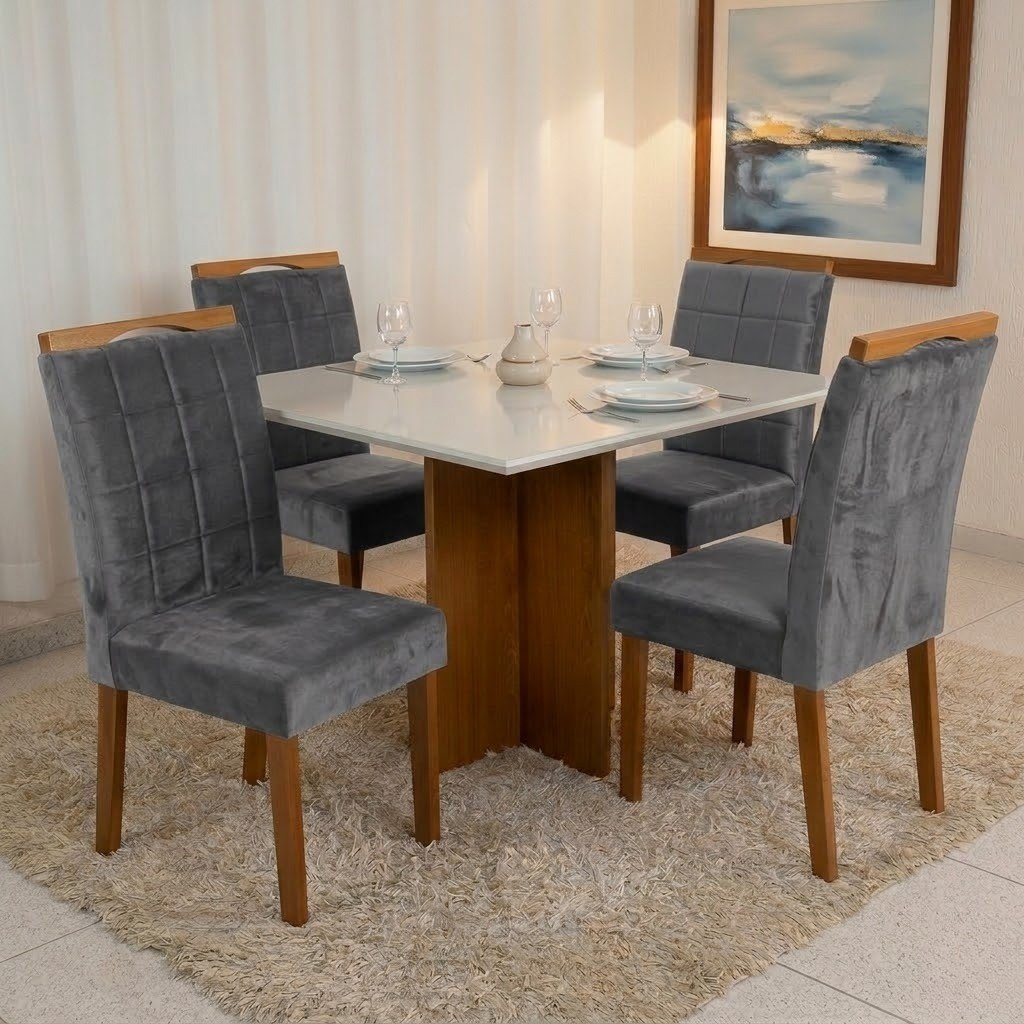 Mesa Salinas 90 (Tampo Dakota c/vidro) Cinamomo/Off White com 4 Cadeiras Las Vegas Veludo Cinza Grafite 10 – CEL MÓVEIS + OURO DECOR