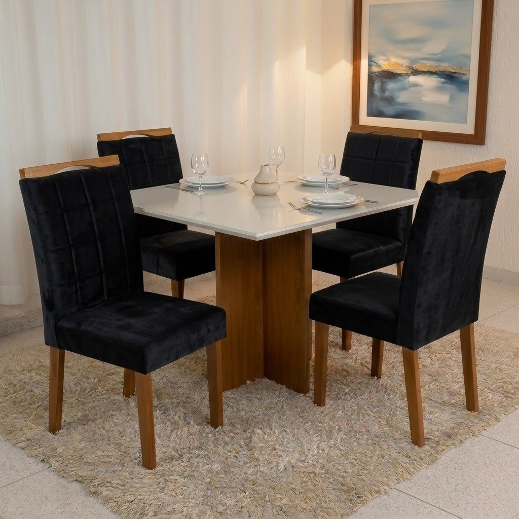 Mesa Salinas 90 (Tampo Dakota c/vidro) Cinamomo/Off White com 4 Cadeiras Las Vegas Veludo Preto 13 – CEL MÓVEIS + OURO DECOR