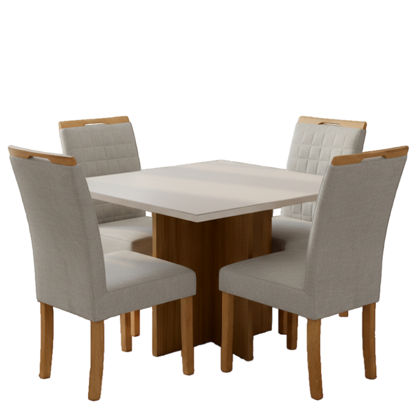Mesa Salinas/Helô/Los Angeles 120 Cinamomo/Off White com 4 Cadeiras Pandora 01 Veludo Cinza Prata 127 – CEL MÓVEIS + CARVALHO DECOR