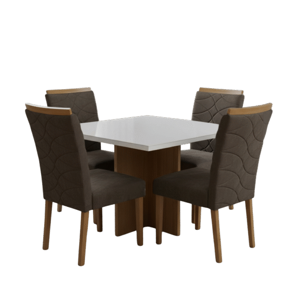 Mesa Salinas 120 Cinamomo/Off White com 4 Cadeiras Safira Veludo Marrom – CEL MÓVEIS + WM DECOR