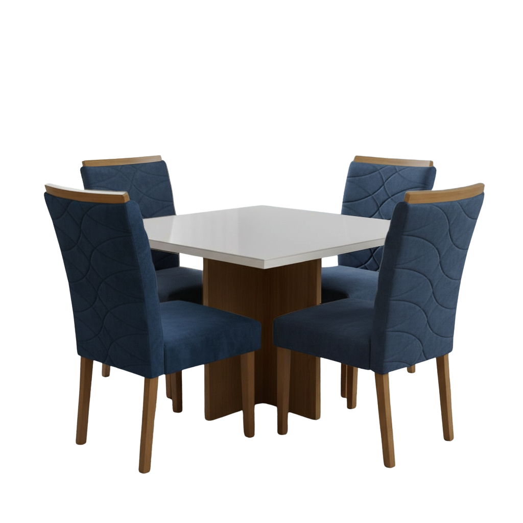 Mesa Salinas/Helô/Los Angeles 90 Cinamomo/Off White com 4 Cadeiras Safira Veludo Azul – CEL MÓVEIS + WM DECOR