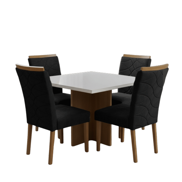 Mesa Salinas 90 Cinamomo/Off White com 4 Cadeiras Safira Veludo Preto – CEL MÓVEIS + WM DECOR