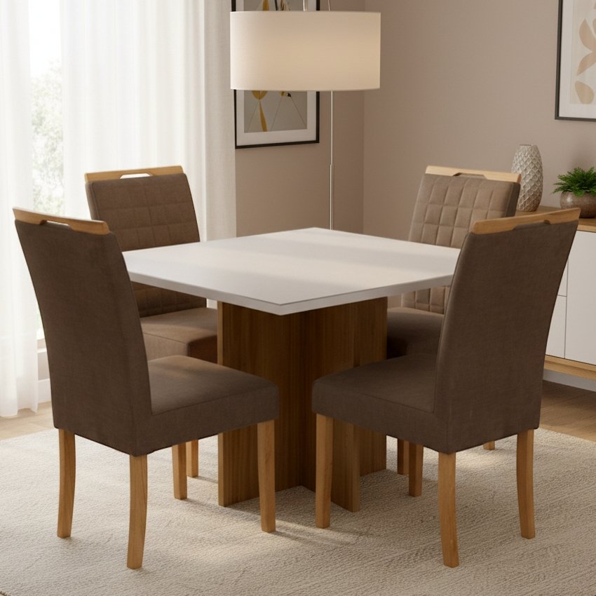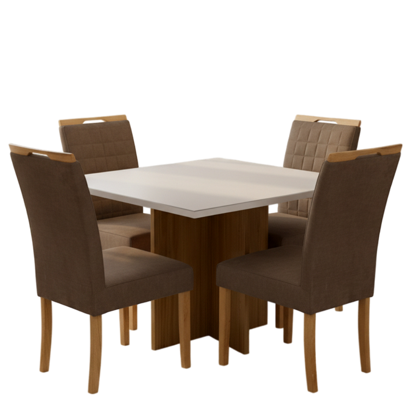 Mesa Salinas 90 Cinamomo/Off White com Cadeiras Pandora 01 Veludo Marrom 134 – CEL MÓVEIS + CARVALHO DECOR