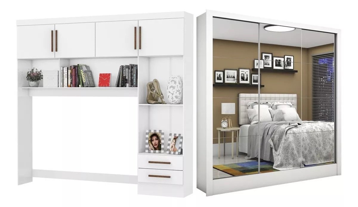 Modulado 4 Portas + Guarda-Roupa 3 Portas Dubai/Santiago Premium Branco – CARIOCA MÓVEIS