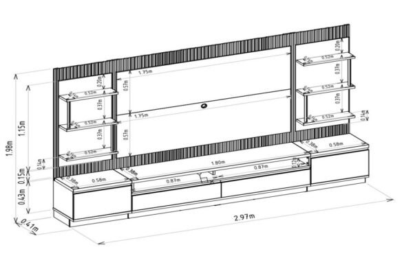 – Espaço para TV: 114 cm x 175 cm (AxL)