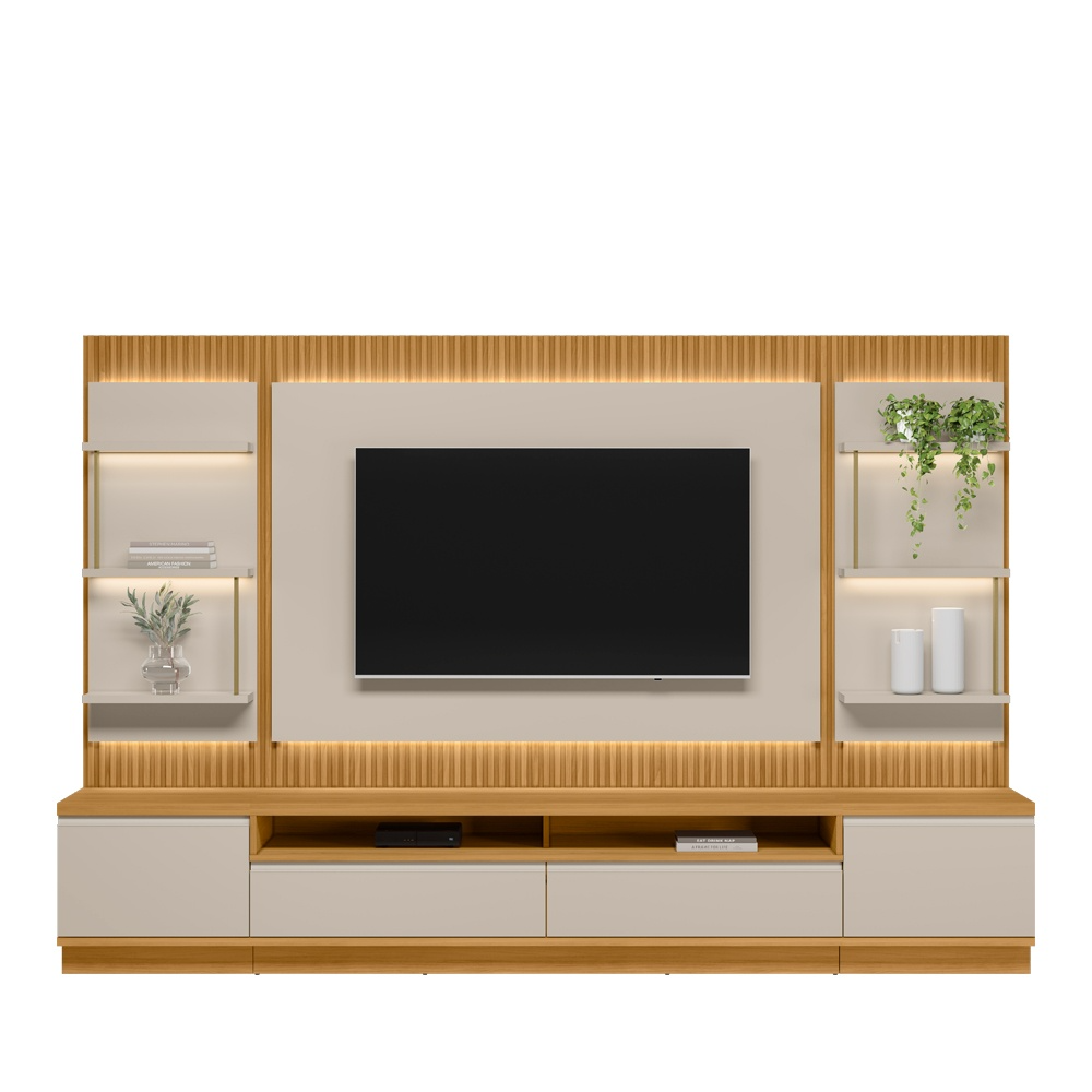 Painel até 70″ + Rack + Dois Módulos Laterais São Paulo Tauari/Off White Fosco – LINEA BRASIL