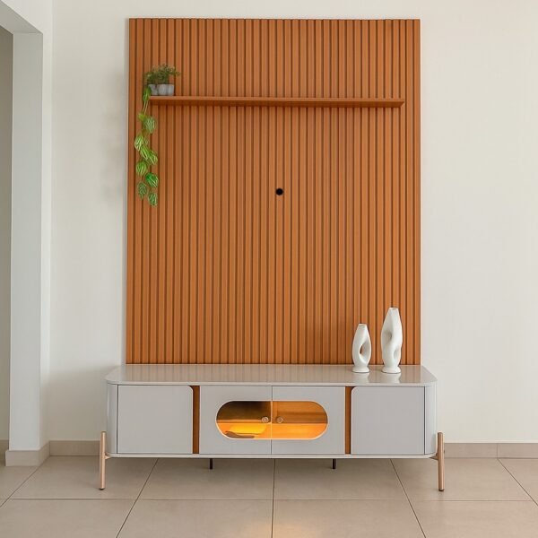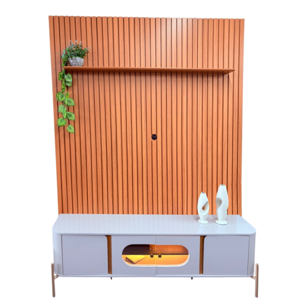 Painel até 75″ Arbo 1.9 Cedro + Rack Juquehy Off White/Naturale – EDN MÓVEIS + BECHARA