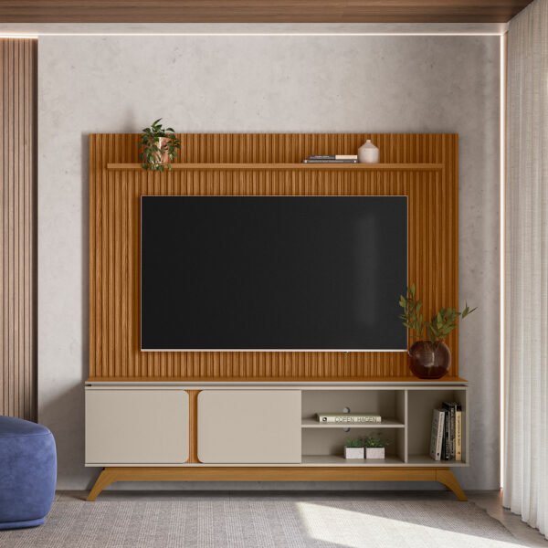 Painel até 75″ Gênova 2.0 Nature + Rack Istambul Nature/Off White – LINEA BRASIL