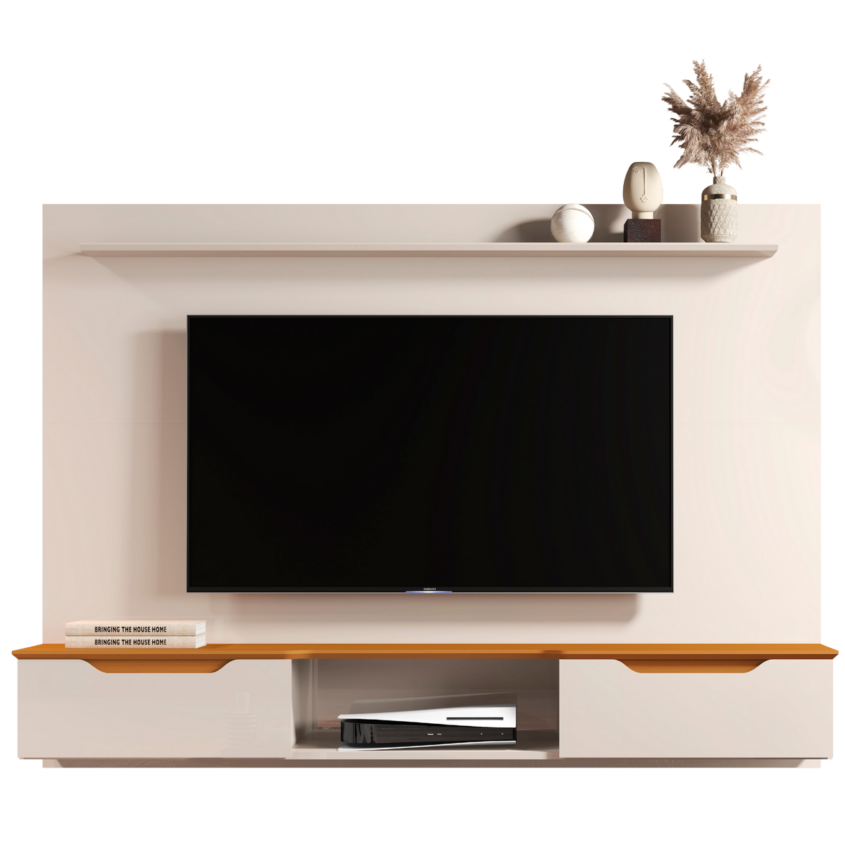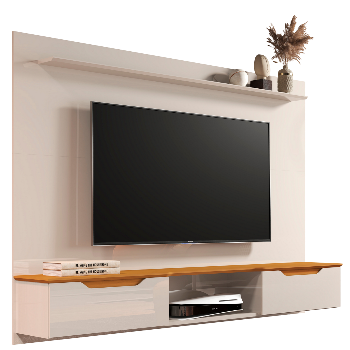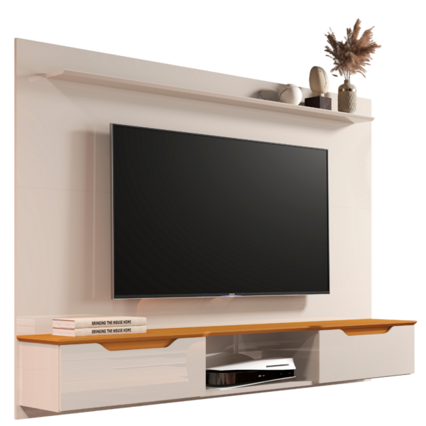 Painel até 75″ Studio Off White/Cedro – EDN MÓVEIS