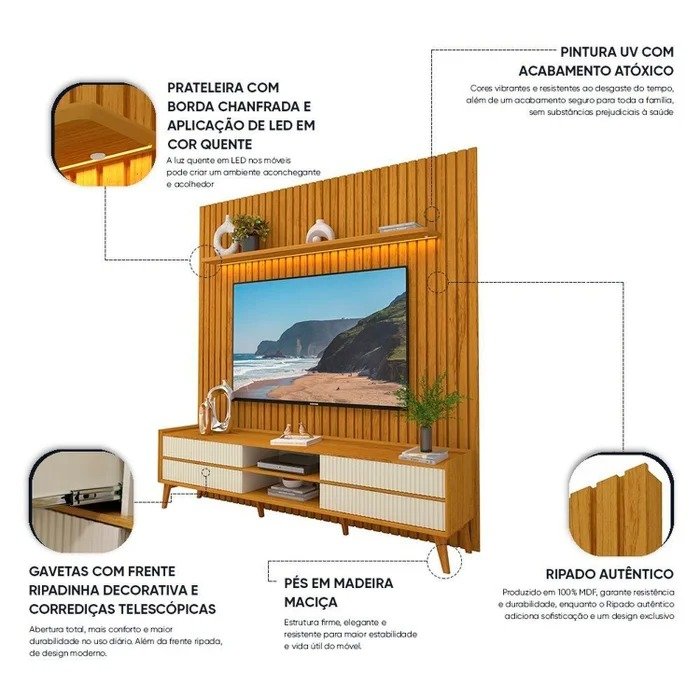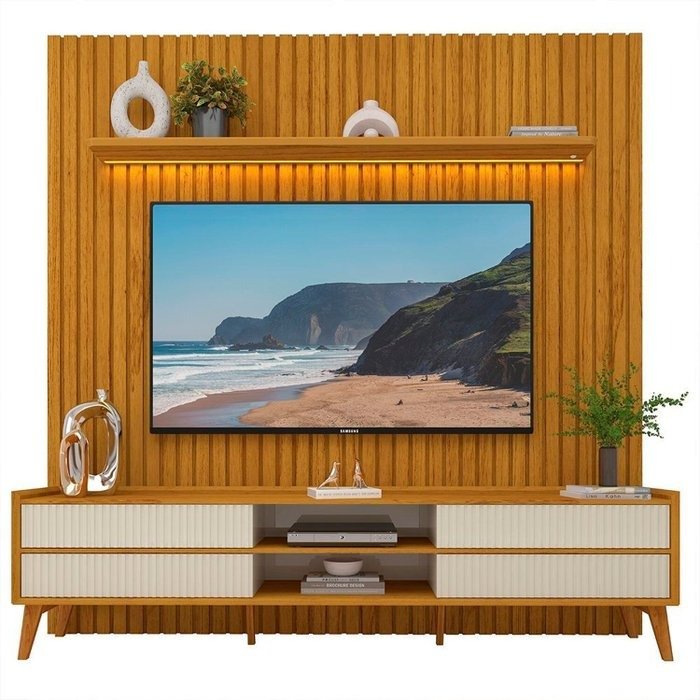 Painel até 85″ Nobre 230 Naturale + Rack Magnífico Naturale/Off White – GELIUS