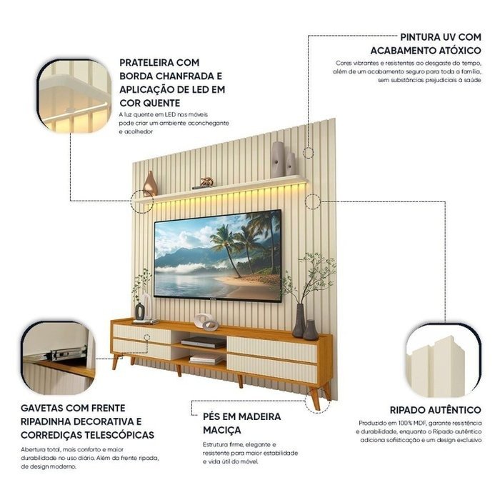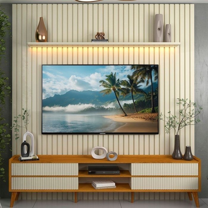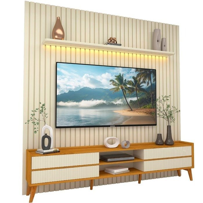 Painel até 85″ Nobre 230 Off White + Rack Magnífico Naturale/Off White – GELIUS