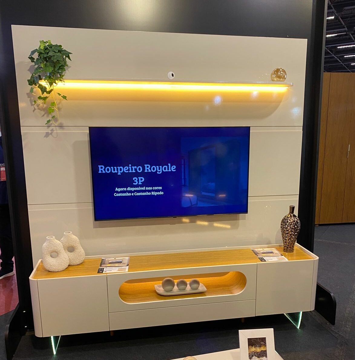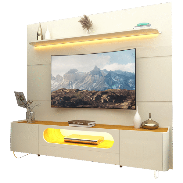 Painel Royal 220 Off White + Rack Nobre 210 Off White/Naturale – GELIUS