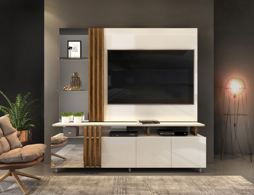 Painel + Bancada até 55″ Donna Off White/Demolição – DJ MÓVEIS