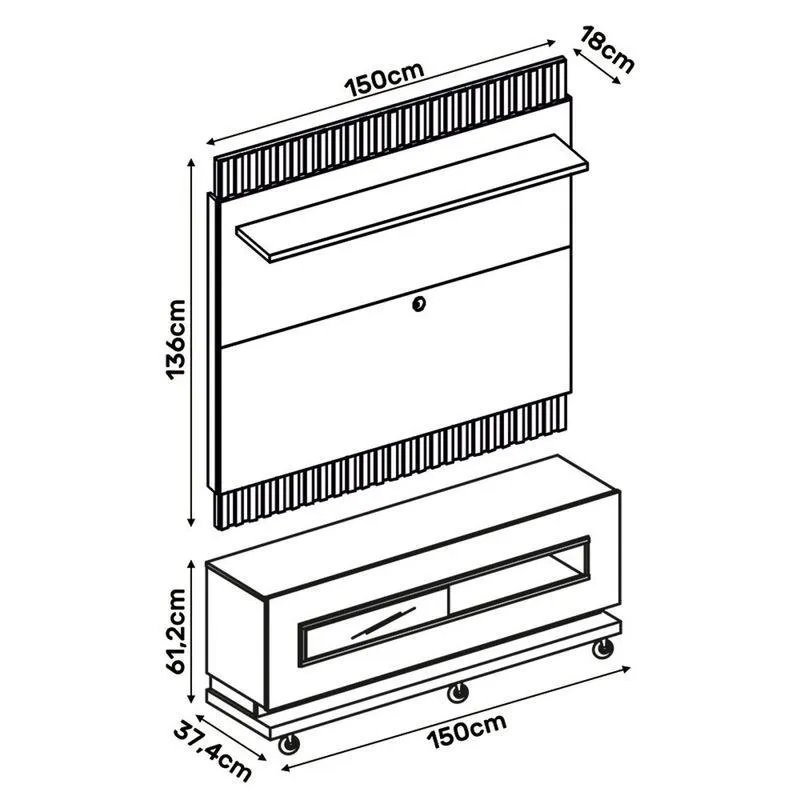 Painel + Bancada até 60″ Vitti Off White/Demolição – DJ MÓVEIS