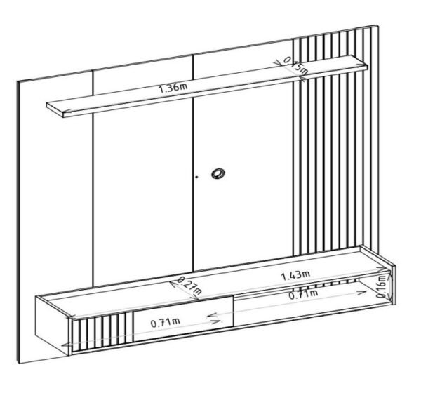– Uma porta de correr MDF 15 mm com frisos e puxador embutido