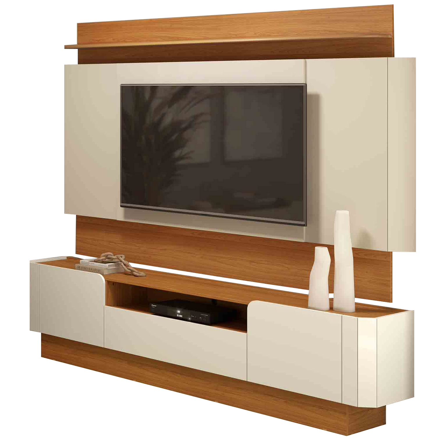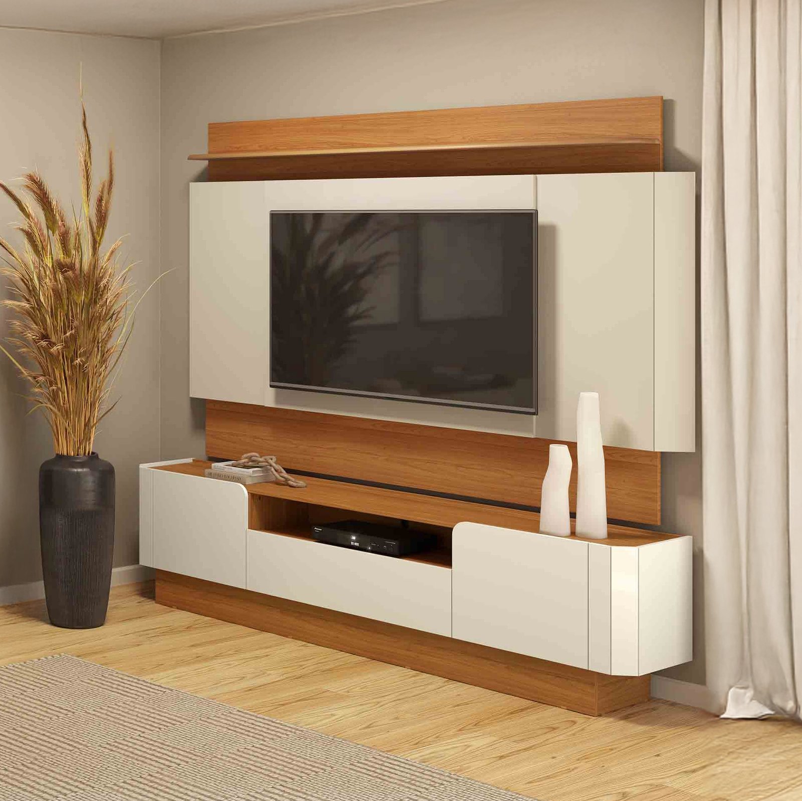 Painel + Rack até 65″ TB116L Off White/Freijó – DALLA COSTA