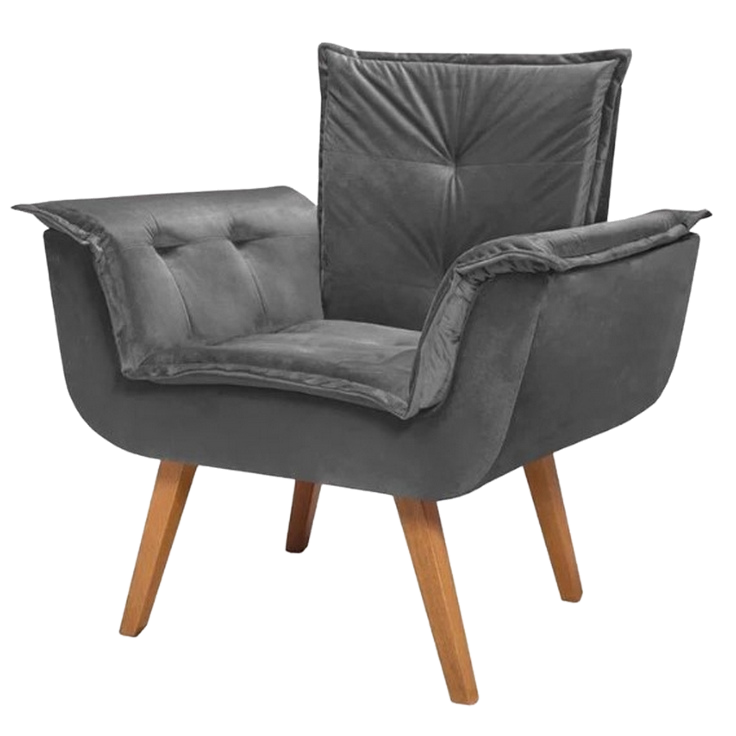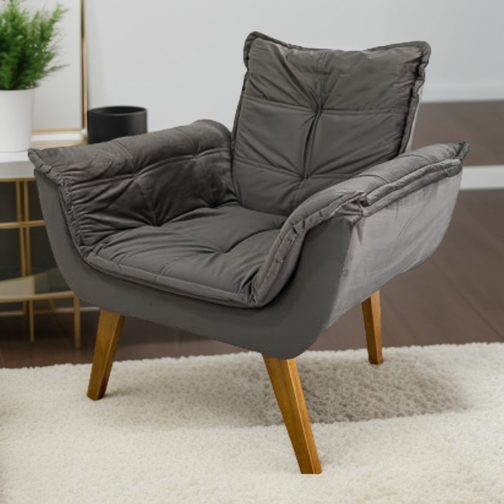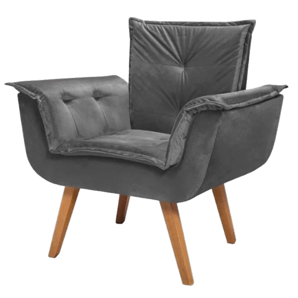 Poltrona Fixa Canadá Veludo Cinza – JP ESTOFADOS