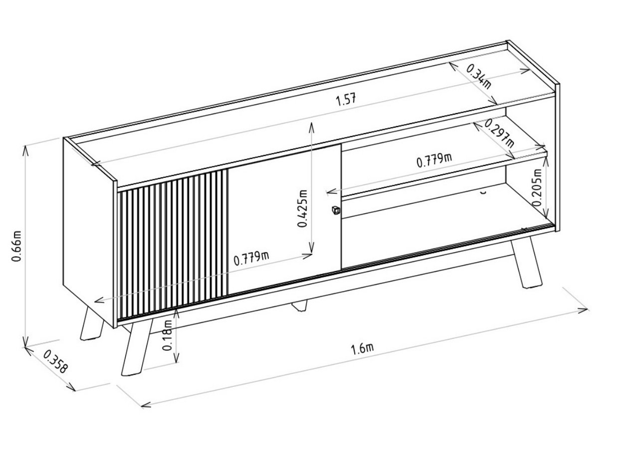 – Uma porta de correr MDF 15 mm em detalhes frisados e puxador na cor cobre