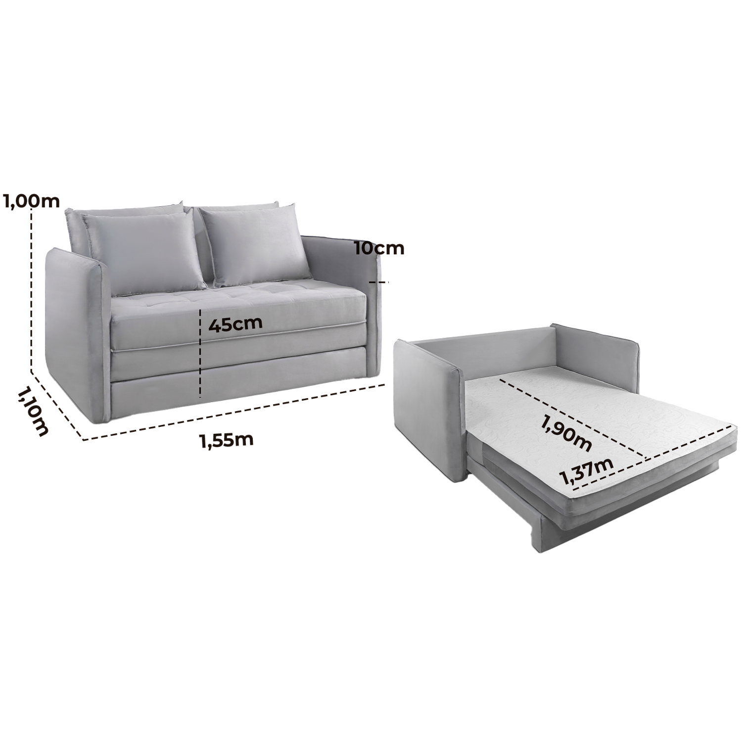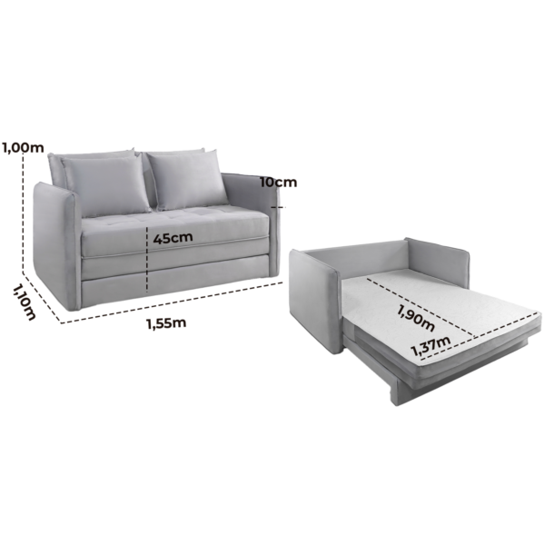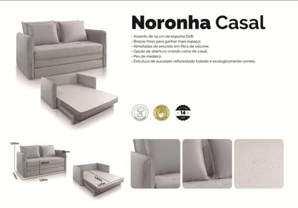 Sofá Cama Casal Noronha 1,55 m Linho Cinza 507 – JC ESTOFADOS