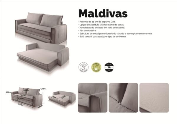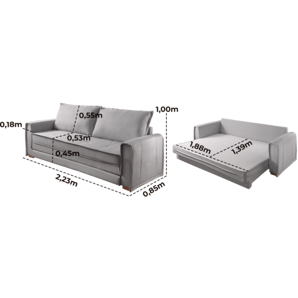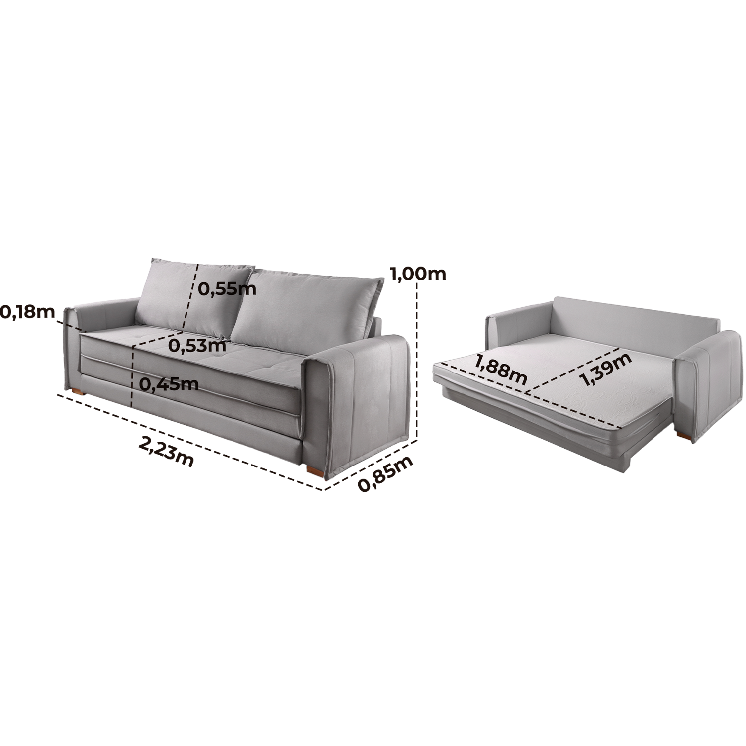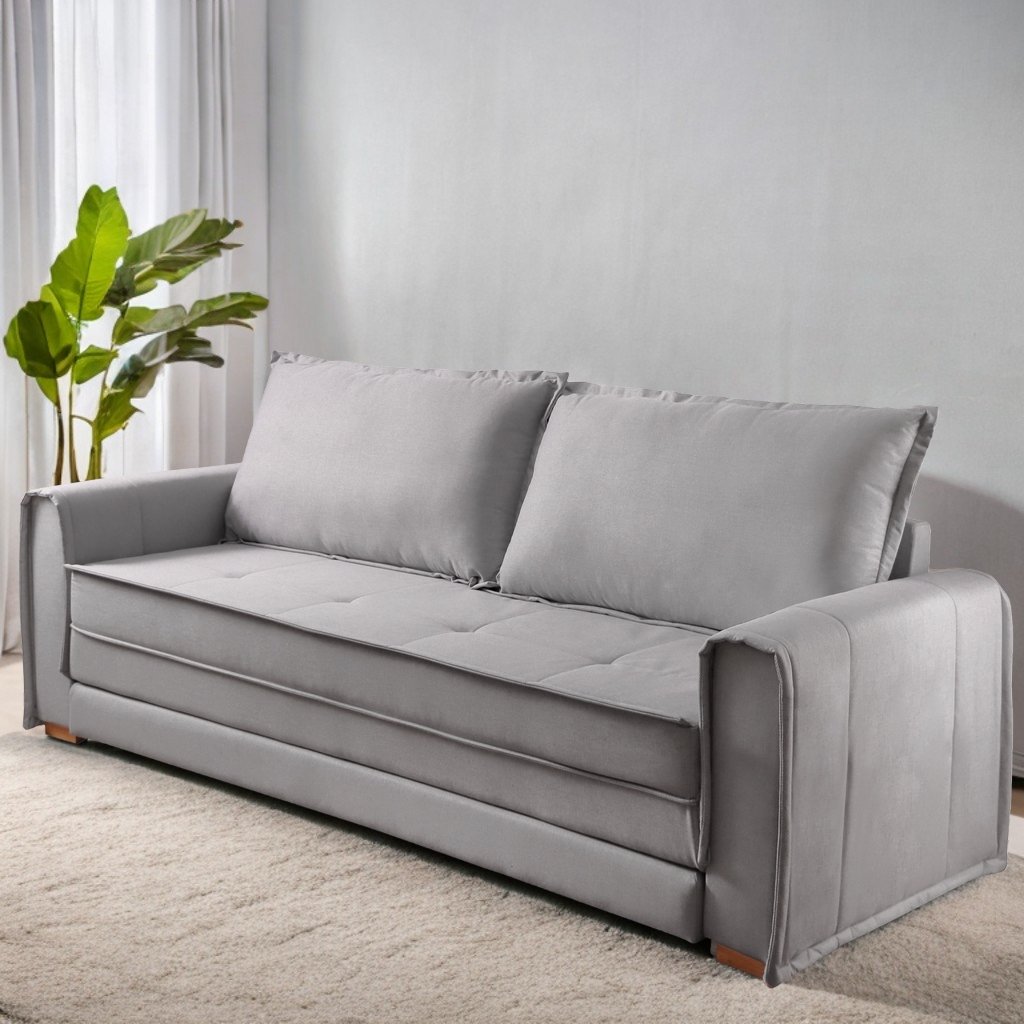 Sofá Cama Maldivas 2,23 m Linho Cinza – JC ESTOFADOS
