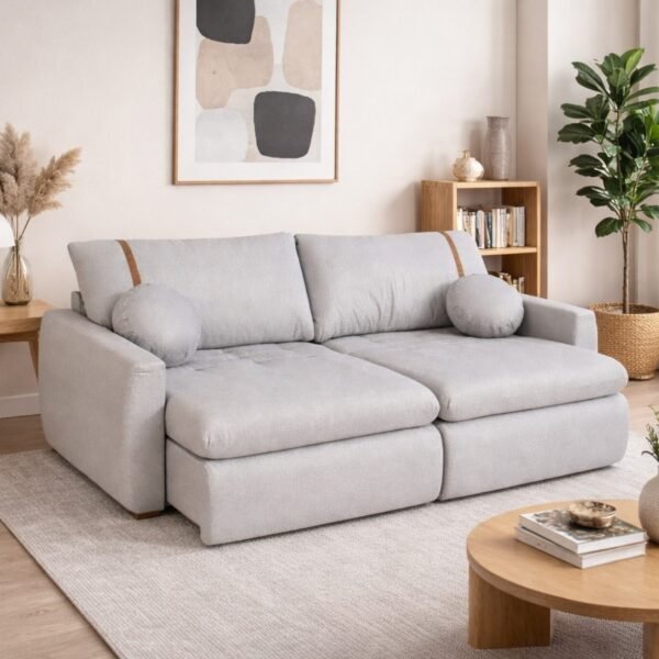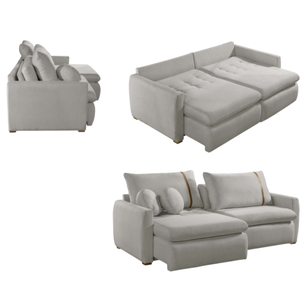 Sofá Cama Retrátil Lagoon 2,30 m Linho Cinza – CONFORT LAR ESTOFADOS