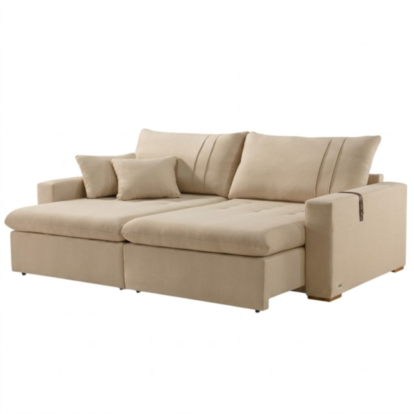 Sofá Cama Retrátil Moscou 2,30 m Linho Bege – CONFORT LAR ESTOFADOS