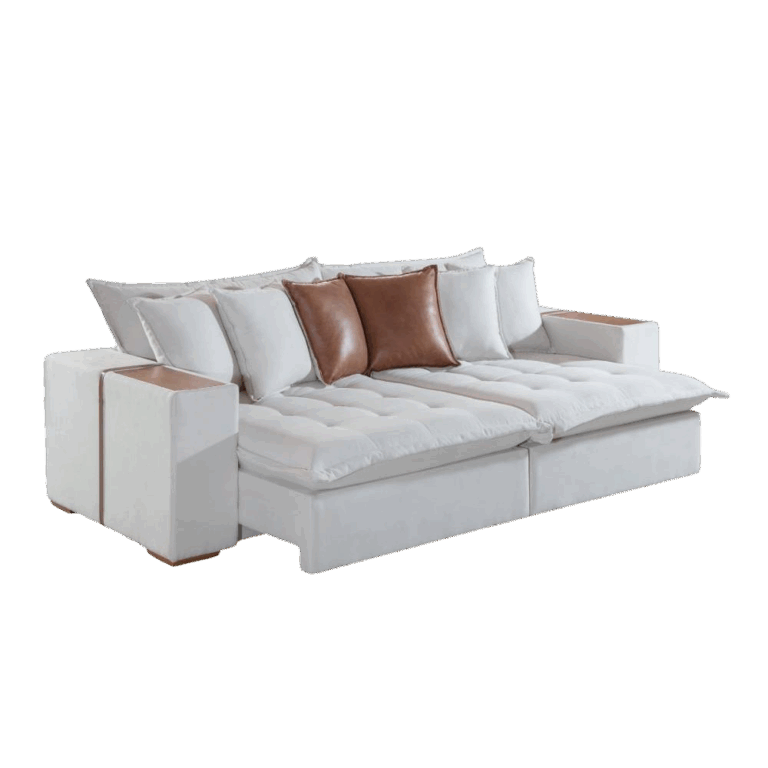 Sofá Cama Tebas Linho Marfim 12/Courino Dallas 07 – INNOVE ESTOFADOS